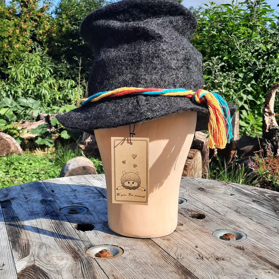 Kapelusz dla mężczyzny wykonany metodą filcowania na mokro w 100% z wełny alpak z naszej hodowli.